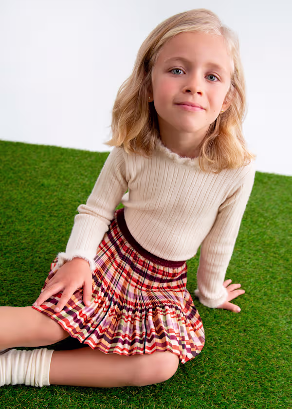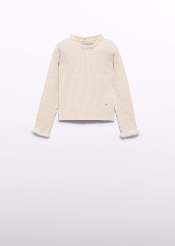 Jersey de punto canalé con cuello cisne. Adorno en cuello y puños. Color beige. De la firma Abel y Lula.