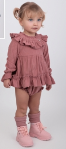 Jesusito y braga a juego en pana-punto, color rosa empolvado, cuello engomado. De la firma Vera.