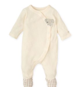 Pelele largo con pie, abertura delantera y entrepierna con botones a presión. Decoración koala bordado y estampad. Composición: 100% Algodón. De la firma Tutto Piccolo