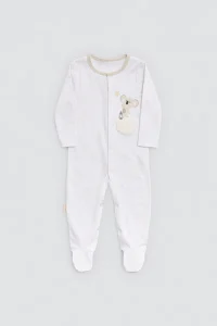 Pelele/Pijama de algodón natural con interior afelpado y estampado de koalas que aporta un toque tierno y divertido. Perfecto para la seguridad del bebé mientras se mueve. De la firma Ysabel Mora.