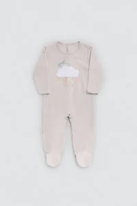 Pelele de manga larga con dibujo de gotas de lluvia en gris. Cierre de botones trasero. Tejido suave con interior afelpado.