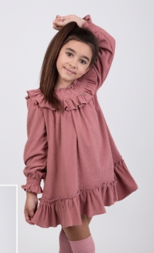 Vestido en pana-punto, color rosa empolvado, cuello engomado. De la firma Vera.